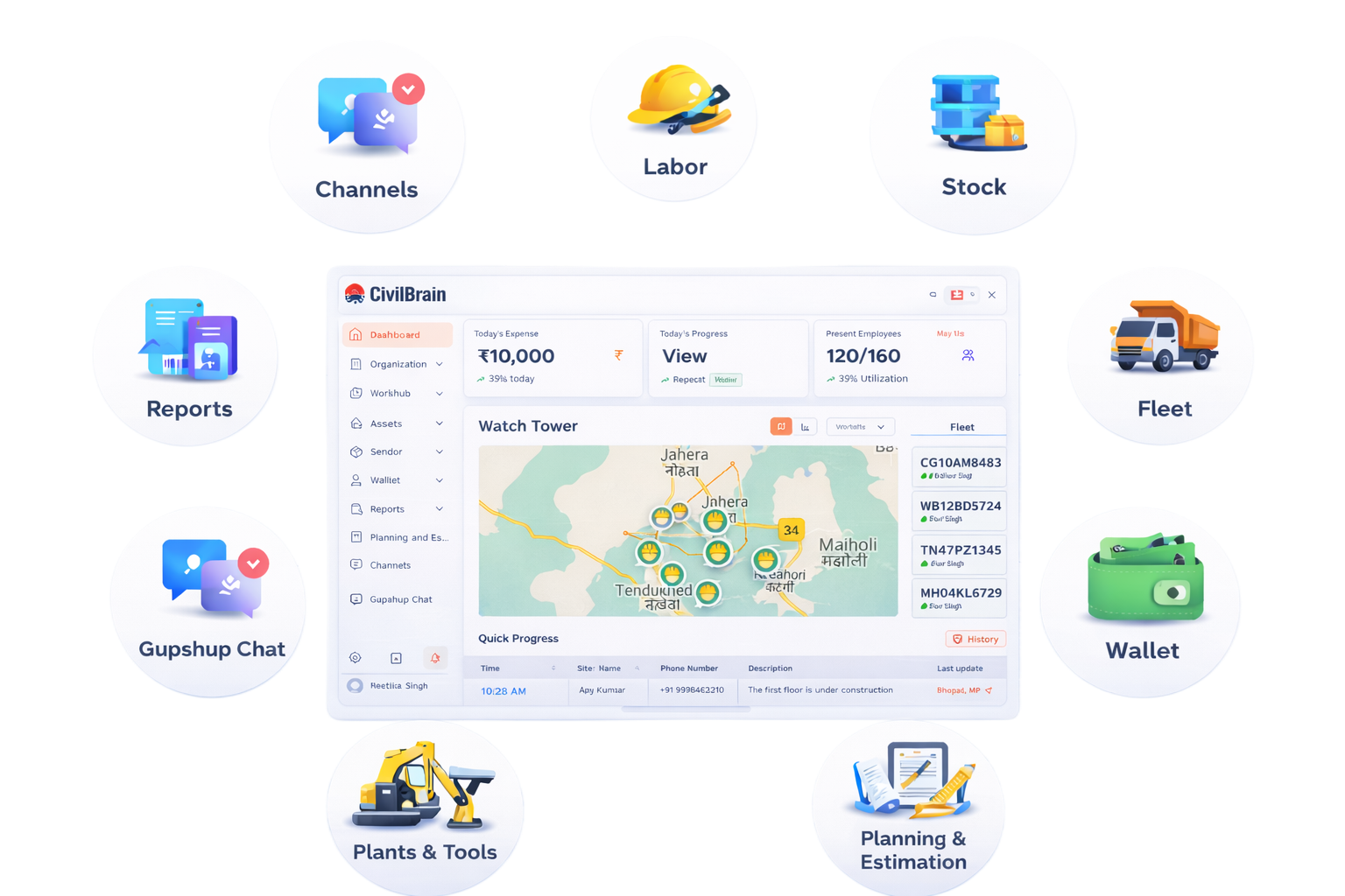 Project managers can monitor live work progress, track daily activities and expenses, manage resources, and collaborate with teams through dedicated channels. With AI-driven insights and instant queries via the Gupshup AI assistant, teams can make faster, data-backed decisions while keeping projects on schedule and within budget.