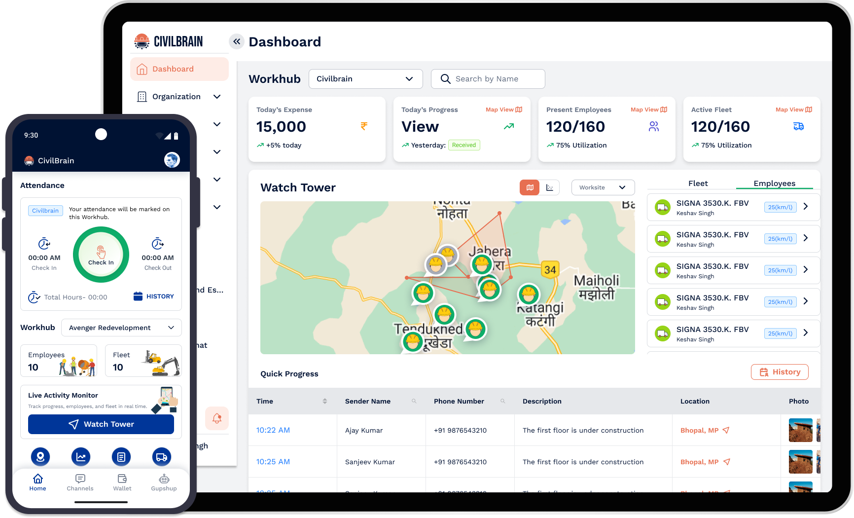 The CivilBrain mobile app gives administrators and project managers a unified platform to manage construction operations.